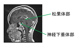 症状:松果体部の腫瘍は中脳水道と呼ばれる細い脳脊髄液流通路を圧迫・閉塞させるために急性の脳圧亢進(頭蓋内圧亢進)をひきおこし、強い頭痛と意識障害がおこります。早期に治療をしなければ致命的にもなりかねません。神経下垂体部に発生した場合は、下垂体と呼ばれるホルモン産生中枢の機能が低下し、様々なホルモン異常が出現します。のどが渇き、水分を沢山飲み、排尿の回数が増える尿崩症や、16歳以上の女性では無月経がみられます。基底核発生腫瘍では、半身の運動麻痺や落ち着きのなさ、などが症状です。