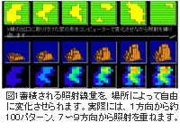 IMRTは、この3D-CRTをさらに進化させた照射法です。照射を行う際に、腫瘍の形に単純に合わせるのでなく、腫瘍の中で照射線量に強弱をつける方法です。IMRTでは、直線加速器に取り付けられたMLC(multi-leaf collimator)と呼ばれるタングステンの板の重なりを、コンピューター制御で動かし、放射線の出てくる窓の形や大きさを変えながら照射を行います。こうすることにより、蓄積された放射線の量を、場所によって自由に変更することができるのです(図1)。