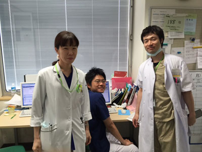 左が吉崎先生,中央は吉田病棟チーフ、右は後期研修医の久保田先生