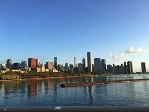 私は学会出張の度に、その土地を少しでも良く知りたいという思いから早起きしてジョギングを行うことが習慣となっており、今回もセッション前に実行しました。シカゴ中心部を端的に表現すると「人工物と自然が調和したとても気持ちの良い街」。ランニング(もしくはサイクリング)のためにミシガン湖岸に数十キロに渡り綺麗に整備された道は、緯度の高い涼しい気候と相まってとても走りやすく、立ち並ぶ新旧の高層ビルの偉容と海のように広大な湖が織りなす迫力ある背景に、公園に差し掛かれば野鳥やリスが元気良く飛び出してくる・・・。学会とは別に、これも貴重な経験でした。
