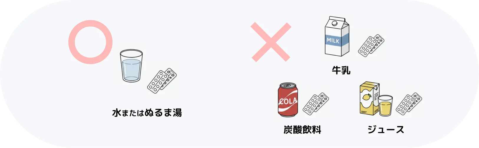 また、お薬は水またはぬるま湯で飲むことが基本です。