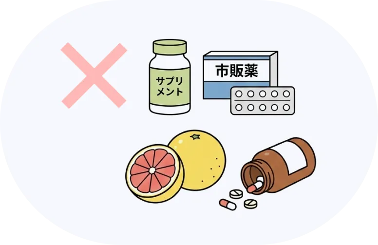 また、市販薬やサプリメントを併用すると、お薬の効果が十分に得られなかったり、副作用が出やすくなったりすることもあります。