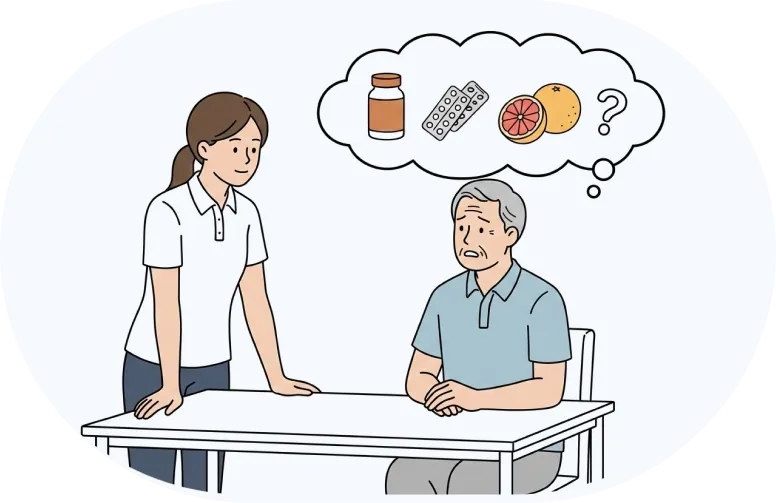 例えば、一部の抗凝固薬や抗血小板薬、コレステロールを下げる薬では、グレープフルーツなど特定の食品と一緒に摂取することで、薬の効き方が強くなったり弱くなったりする場合があります。