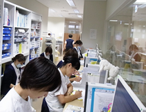 多くの診療科と共同で県内随一の実績を誇る通院治療室を支えています。看護、薬学のスタッフとの協力体制が欠かせません。