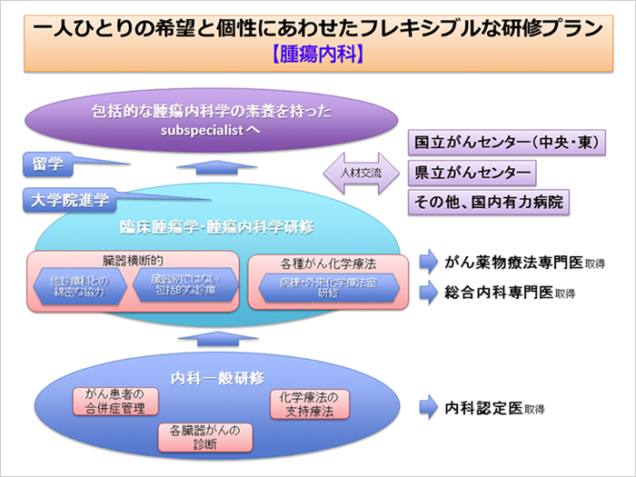 国立がんセンター(中央・東)、県立がんセンターをはじめ、数多くの病院と人材交流を行っています。