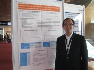 当科からは私光永が「小児潰瘍性大腸炎に対する鏡視下大腸全摘術の功罪」という演題で、2000年代に入って臨床導入した腹腔鏡下大腸全摘術の治療成績について報告しました。この術式は、従来の開腹手術と比べて手術時間は長くかかりますが、出血量は大幅に少なく、術後の排便機能の回復も早いというメリットがあります。しかし合併症が少ないとはいえないため、今後も教室を挙げて手術技術の向上と手技の工夫に取り組んでいきます。