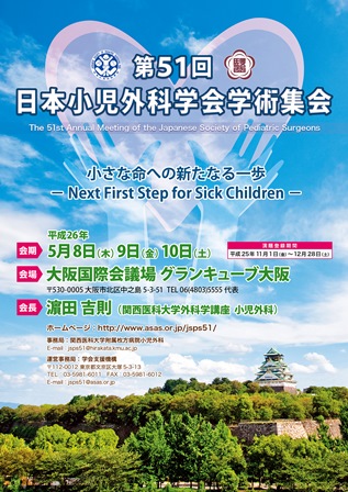 2014年5月8日から10日までの3日間、関西医科大学小児外科の濱田吉則先生を会長として、第51回日本小児外科学会学術集会が大阪国際会議場で開催されました。