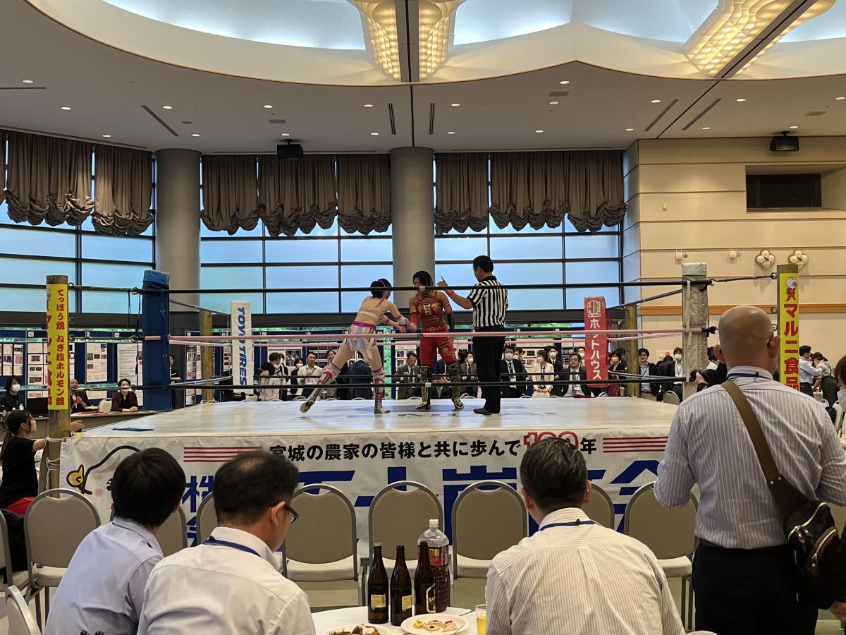 今回は新型コロナウイルス感染症が第5類に引き下げられてから初めての開催でした。1日目の最後のセッションでは、センダイガールズプロレスリングよるプロレス試合や、テニス・サッカー大会が行われ、とても華やかでした。