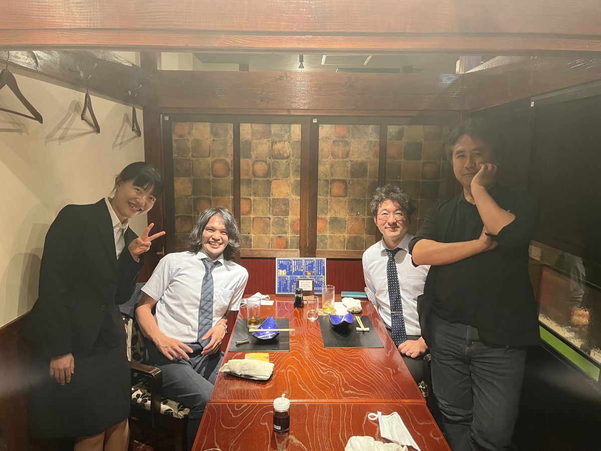 1日目の夜は那須先生、堀越先生、阿久津先生と一緒に仙台の美味しい料理やお酒を楽しみながら、今まで知らなかった貴重な話が飛び出したり、大いに盛り上がりました。
