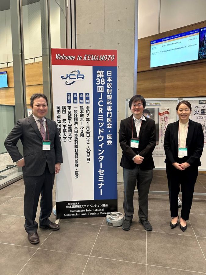 2025年1月25・26日、熊本県は熊本城ホールにて第38回JCRミッドウィンターセミナーが開催されました。今回のセミナーでは当科の横田先生が世話人を務められており、神経のセッションでは、横田先生と向井先生のお二人による脊椎脊髄の画像疾患についての領域講習やハンズオンセミナーも開催されていました。