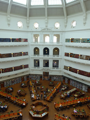 Victoria州立図書館。美しい吹き抜けのドームの下で勉強ができます。