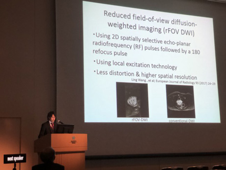 当科からは窪田先生が、single-shot法によるFLAIRが、非常に激しい体動の患者であっても診断に有効な画像を得られることを発表しました。この撮像法は、東千葉メディカルセンターの坂井上之技師が考案したものです。Gyrocupというコンペティションが2年に1回行われるのですが、Philips userが一工夫・二工夫加えたシークエンスをお互いにプレゼンし、審査員・参加者の投票で順位を付けるというものです。今年は9/7の夜に行われ、彼のsingle-shot FLAIRは、全国第2位でsilver awardを受賞されました。坂井さん、おめでとうございます!技師が撮像法を提案し、この臨床的有効性を医師が証明するという、放射線部門における素晴らしいコラボレーションが出来たのではと思います。