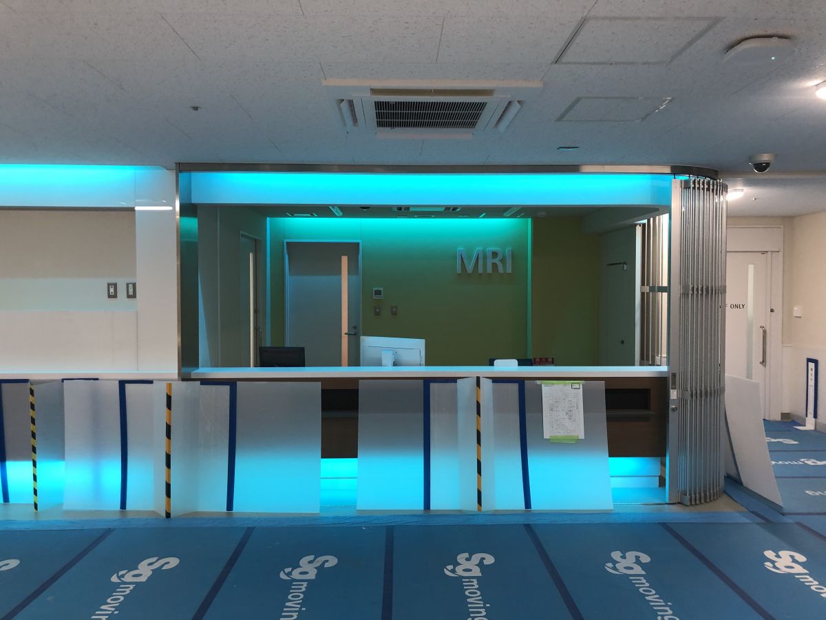 • 青色の照明を辿るとMRI検査室の受付に着きます。
