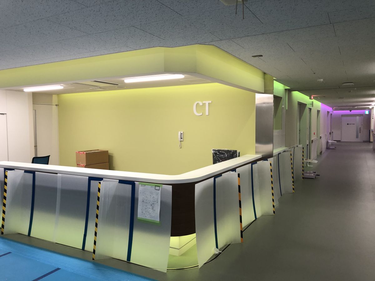 • 黄緑色の照明を辿っていくと、CT検査室に到着できるように工夫されています。
