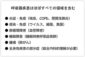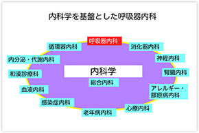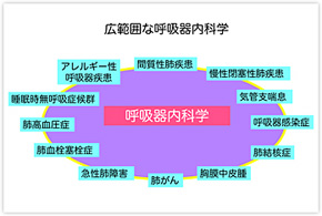 内科学の担当する範囲は広汎であり、その一つが呼吸器内科学です(図1)。