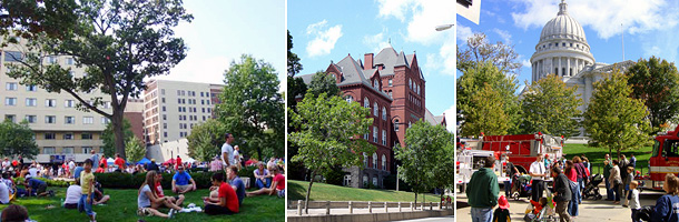(左1-2枚目:University of Wisconsin Madison, 右Wisconsin state capital)