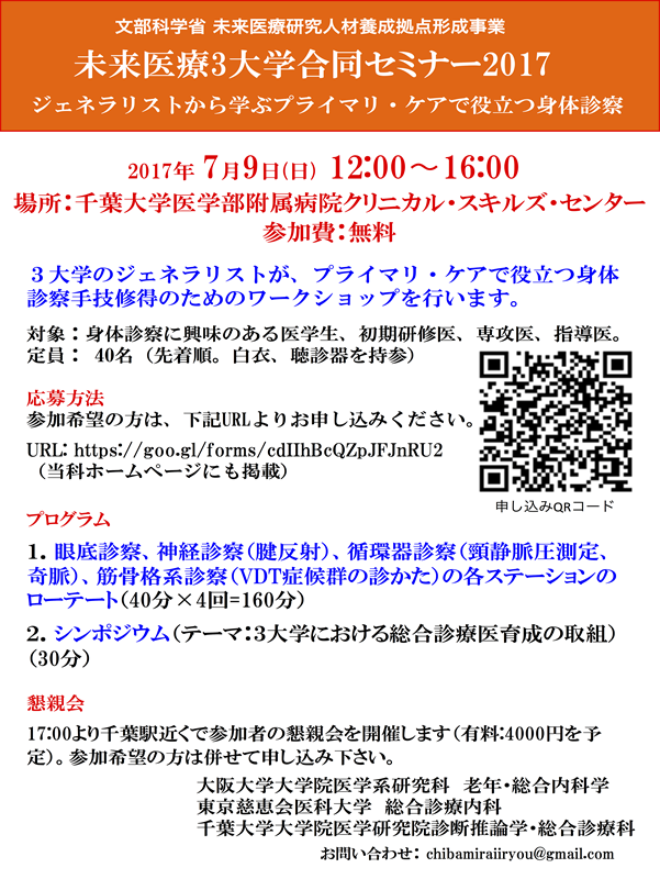 3大学のジェネラリストが、プライマリ・ケアで役立つ身体診察手技修得のためのワークショップを行います。