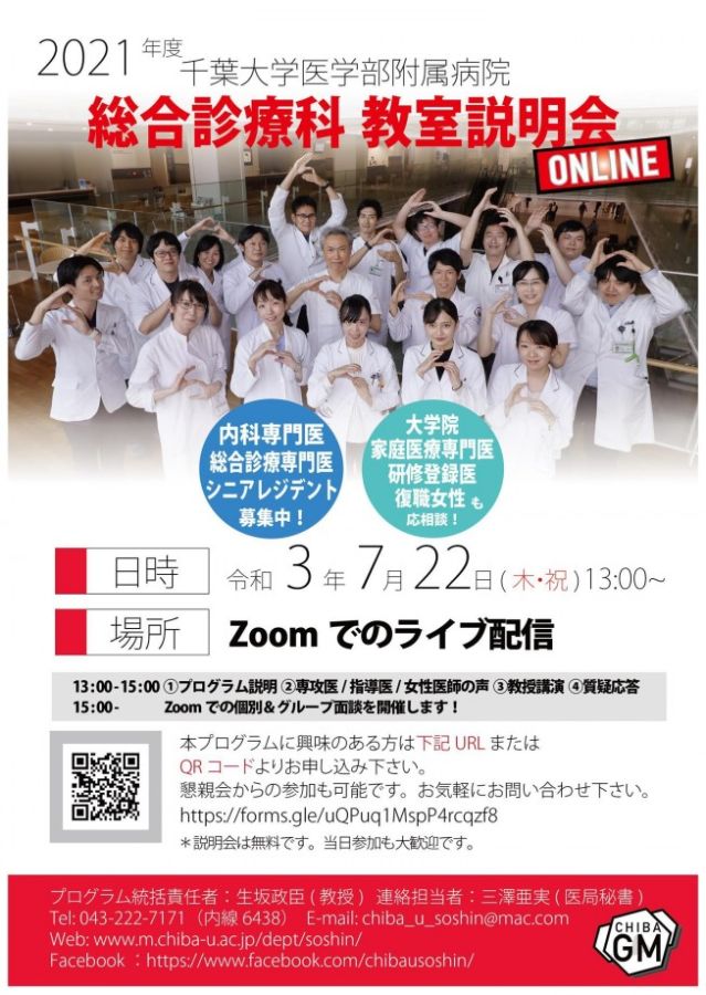 7月22日(木・祝) 13時00分より、当科の教室説明会を開催します!