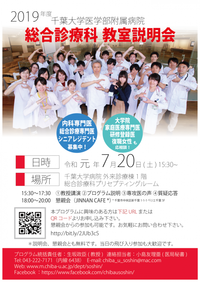 千葉大学総合誌診療科スタッフ、専攻医を交えての説明会と懇親会を行います。